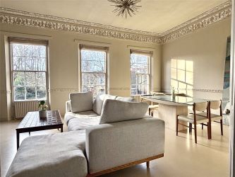 Moving up, the lounge/diner is a standout feature of the home. With three large windows, natural light fills the space, highlighting charming details like decorative coving and a chandelier. It’s ideal for both everyday living and entertaining guests.