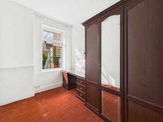 There are two well-proportioned bedrooms, with the principal bedroom positioned to the front aspect. This room benefits from traditional style features, including ceiling coving, a central ceiling rose, and a beautiful fireplace set into the chimney breast, adding charm and character to the space.